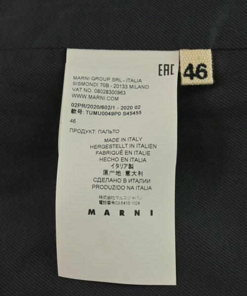 [Brand] MARNI [Type] Men's [Condition] Rank: B [Color] Navy [Size] 46 (M) [Actual size] Width: 50cm Sleeve length: 90cm Length: 108.5cm [Material] 100% wool, (lining) 70% cotton, 30% nylon, (bag fabric) 100% cotton [Country of origin] Italy [Other details] Season: Autumn-Winter Pockets: Yes Total outside pockets: 2, Total inside pockets: 2 Translucency: None Fabric thickness: normal Lining: Yes Elasticity: None Gloss: None Opening and closing: button |