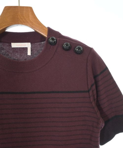 [Brand] See By Chloe [Type] Women's [Condition] Rank: B [Color] Dark red x black (border) [Size] XS [Actual size] Width: 39cm Shoulder width: 39cm Sleeve length: 22.5cm Length: 54.5cm [Material] 100% cotton [Country of origin] China [Other details] Season: Spring-Summer Pocket: None Translucency: None Fabric thickness: normal Lining: None Elasticity: Yes Gloss: None Opening and closing: button |