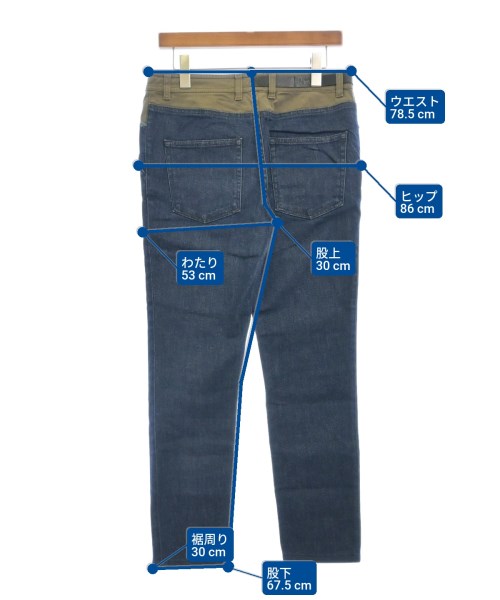 [Brand] N゚ 21 [Type] Women's [Condition] Rank: B [Color] Indigo x Khaki (Denim) [Size] 28 (Large) [Actual size] Waist: 78.5cm Hem circumference: 30cm Hip:86cm Crossing:53cm Rise: 30cm Inseam:67.5cm [Material] 98% cotton, 2% polyurethane, (separate fabric) 97% cotton, 3% polyurethane [Country of origin] Italy [Other details] Season: All season Pockets: Yes Outside Pockets: 5 Translucency: None Fabric thickness: normal Lining: None Elasticity: Yes Gloss: None Opening and closing: button Opening and closing: zipper Pattern: Plain Length: Long length |