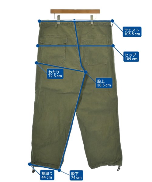 [Brand] Y's [Type] Men's [Condition] Rank: B [Color] Khaki [Size] 3 (Medium) [Actual size] Waist: 105.5cm Hem circumference: 44cm Hip:109cm Crossing: 72.5cm Rise: 38.5cm Inseam:74cm [Material] 100% cotton [Country of origin] Japan [Other details] Season: All season Pockets: Yes Outside Pockets: 4 Translucency: None Fabric thickness: normal Lining: None Elasticity: None Gloss: None Opening and closing: zipper Pattern: Plain Length: Long length |