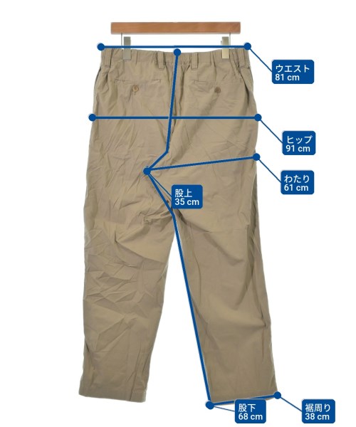 [Brand] ISSEY MIYAKE MEN [Type] Men's [Condition] Rank: B [Color] Gray beige [Size] 1 (S size) [Actual size] Waist:81cm Hem circumference: 38cm Hip:91cm Crossing:61cm Rise: 35cm Inseam:68cm [Material] 100% cotton [Country of origin] Japan [Comment] The waist is adjustable with elastic. [Other details] Season: Spring-Summer Pockets: Yes Outside Pockets: 4 Translucency: None Fabric thickness: normal Lining: None Elasticity: None Gloss: None Opening and closing: zipper Pattern: Plain Length: Long length |