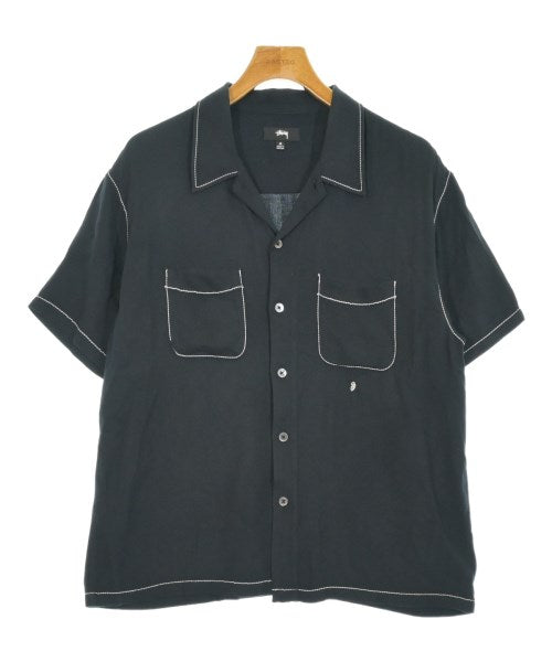 [Brand] STUSSY [Type] Men's [Condition] Rank: B [Color] Black [Size] M [Actual size] Width: 55cm Shoulder width: 49.5cm Sleeve length:23cm Length: 70cm [Material] 100% rayon [Country of origin] Portugal [Other details] Season: Spring-Summer Pockets: Yes Outside Pockets: 2 Translucency: None Fabric thickness: normal Lining: None Elasticity: None Gloss: None Opening and closing: button |
