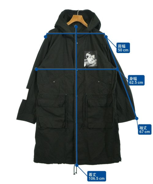 [Brand] UNDER COVER [Type] Men's [Condition] Rank: A [Color] Black [Size] 3 (Large) [Actual size] Width: 62.5cm Shoulder width: 50cm Sleeve length:67cm Length: 106.5cm [Material] 100% cotton, (separate fabric) 65% rayon, 35% cotton [Country of origin] Japan [Other details] Season: Spring-Summer Pockets: Yes Outside Pockets: 4 Translucency: None Fabric thickness: normal Lining: None Elasticity: None Gloss: None Opening and closing: snap button Pattern: printed logo |