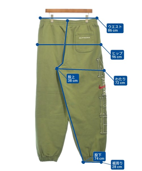 [Brand] Supreme [Type] Men's [Condition] Rank: A [Color] Khaki [Size] L [Actual size] Waist:86cm Hem circumference: 28cm Hip:96cm Crossing:72cm Rise: 38cm Inseam:74cm [Material] 84% cotton, 16% polyester [Country of Origin] Pakistan [Comment] This is a collaboration item with NIKE. [Other details] Season: Autumn-Winter Pockets: Yes External pockets: 3 Translucency: None Fabric thickness: normal Lining: None Elasticity: Yes Gloss: None Opening and closing: None Pattern: Plain Length: Long length |