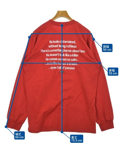 [Brand] Supreme [Type] Men's [Condition] Rank: A [Color] Red [Size] L [Actual size] Width: 55cm Shoulder width: 50cm Sleeve length:66cm Length: 75.5cm [Material] 100% cotton 【Country of Origin】United States [Other details] Season: All season Pocket: None Translucency: None Fabric thickness: normal Lining: None Elasticity: Yes Gloss: None Opening and closing: None Neck: V-neck Sleeve length: long sleeve Pattern: printed logo |