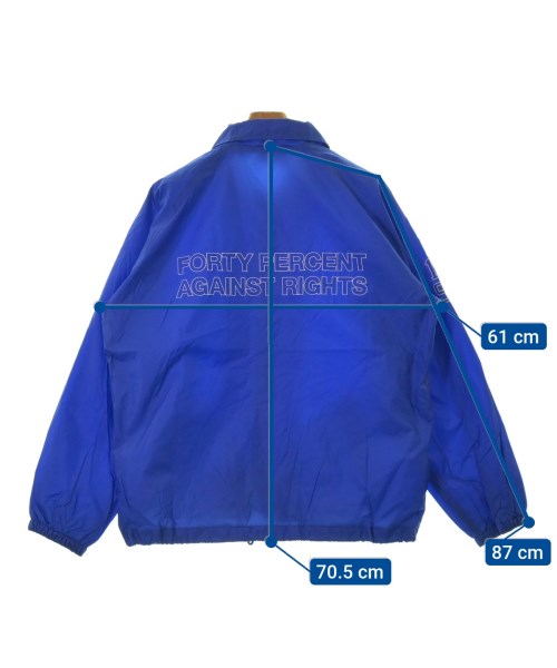 [Brand] FORTY PERCENT AGAINST RIGHTS [Type] Men's [Condition] Rank: B Details: There are stains on the hem. [Color] Blue [Size] L [Actual size] Width: 61cm Sleeve length: 87cm Length: 70.5cm [Material] 100% nylon, (lining) 100% polyester [Country of origin] Vietnam [Comment] Cardinal [Other details] Season: Spring-Summer Pockets: Yes Outside Pockets: 2 Translucency: None Fabric thickness: normal Lining: Yes Elasticity: None Gloss: Yes Opening and closing: snap button Pattern: printed logo |