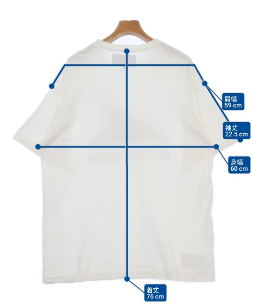 [Brand] DESCENDANT [Type] Men's [Condition] Rank: B Details: Some stains [Color] White [Size] 3 (Large) [Actual size] Width: 60cm Shoulder width: 59cm Sleeve length: 22.5cm Length:76cm [Material] 100% cotton [Country of origin] Japan [Other details] Season: Spring-Summer Pocket: None Translucency: Yes Fabric thickness: normal Lining: None Elasticity: Yes Gloss: None Opening and closing: None Neck: crew neck Sleeve length: short sleeve Pattern: printed logo |