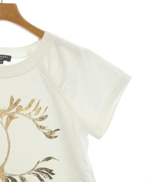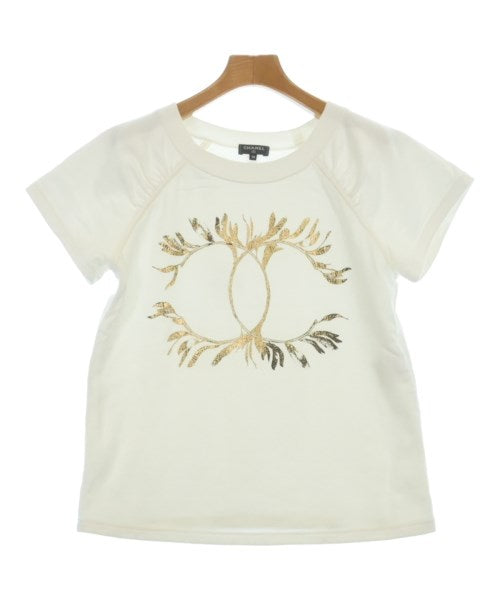 [Brand] CHANEL [Type] Women's [Condition] Rank: A [Color] White x Gold [Size] XS [Actual size] Width: 42cm Sleeve length: 34cm Length: 55cm [Material] 100% cotton [Country of origin] Italy [Other details] Season: Spring-Summer Pocket: None Translucency: Yes Fabric thickness: normal Lining: None Elasticity: Yes Gloss: Yes Opening and closing: None Sleeve length: short sleeve Pattern: printed logo |