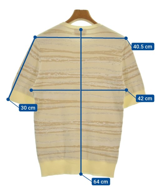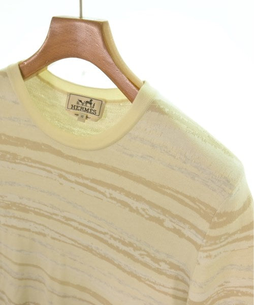 [Brand] HERMES [Type] Men's [Condition] Rank: A [Color] Ivory x beige x white (all-over pattern) [Size] XS [Actual size] Width: 42cm Shoulder width: 40.5cm Sleeve length: 30cm Length:64cm [Material] 100% cotton [Country of origin] Italy [Other details] Season: Spring-Summer Pocket: None Translucency: Yes Fabric thickness: normal Lining: None Elasticity: Yes Gloss: None Opening and closing: None Neck: crew neck Sleeve length: short sleeve Pattern: patterned Gauge: High Gauge |