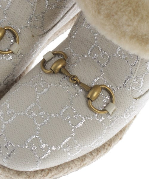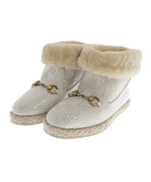 [Brand] GUCCI [Type] Women's [Condition] Rank: B Details: There are stains on the right foot. [Color] Ivory x Silver (all-over pattern) [Size] 36 (22.5 cm size) [Actual size] Height:11cm Heal:2cm Sole (total length): 25.5cm Sole width: 9.5cm Cylinder circumference: 27cm [Accessories] Box, bag [Country of origin] Italy [Other details] Season: Autumn-Winter |