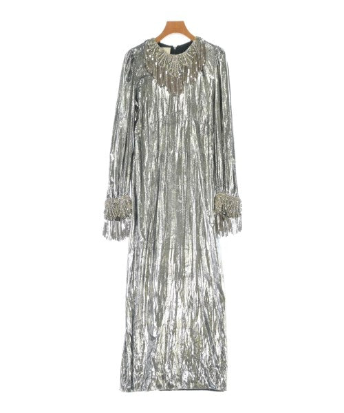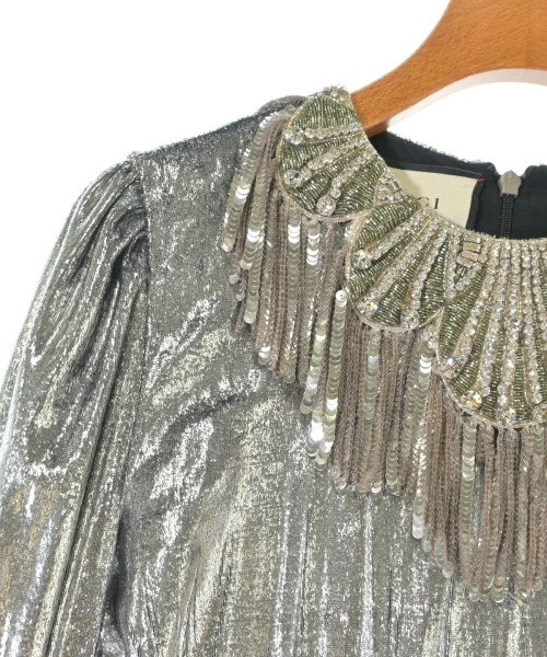 [Brand] GUCCI [Type] Women's [Condition] Rank: A [Color] Silver [Size] 36 (XS) [Actual size] Width: 40.5cm Shoulder width: 35cm Sleeve length:62cm Waist:66cm Hip:94cm Slit:52cm Length: 133.5cm [Material] 75% polyester, 25% silk, (separate fabric 1) 100% silk, (separate fabric 2) metal, glass fiber, polyester, (lining) 73% acetate, 27% silk [Country of origin] Italy [Other details] Season: Spring-Summer Pocket: None Translucency: None Fabric thickness: normal Lining: Yes Elasticity: None Gloss: Yes Opening and closing: zipper |