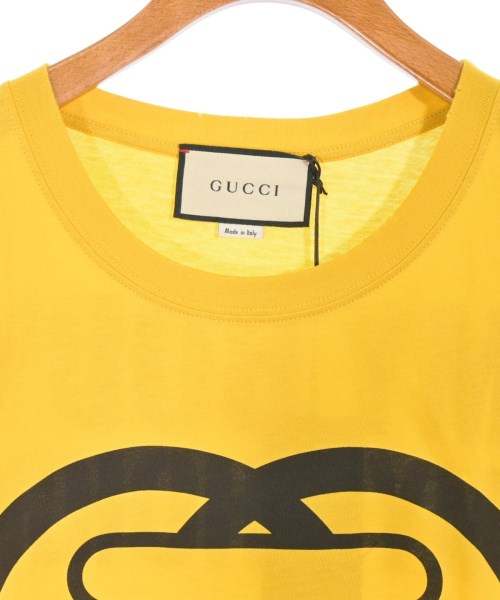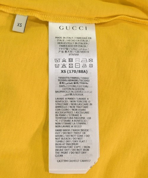 [Brand] GUCCI [Type] Men's [Condition] Rank: Like new Details: Quality label notch [Color] Yellow, etc. [Size] XS [Actual size] Width: 48cm Shoulder width: 43.5cm Sleeve length: 19.5cm Length: 65cm [Accessories] box [Material] 100% cotton [Country of origin] Italy [Other details] Season: Spring-Summer Pocket: None Translucency: Yes Fabric thickness: normal Lining: None Elasticity: Yes Gloss: None Opening and closing: None Neck: crew neck Sleeve length: short sleeve Pattern: printed logo |