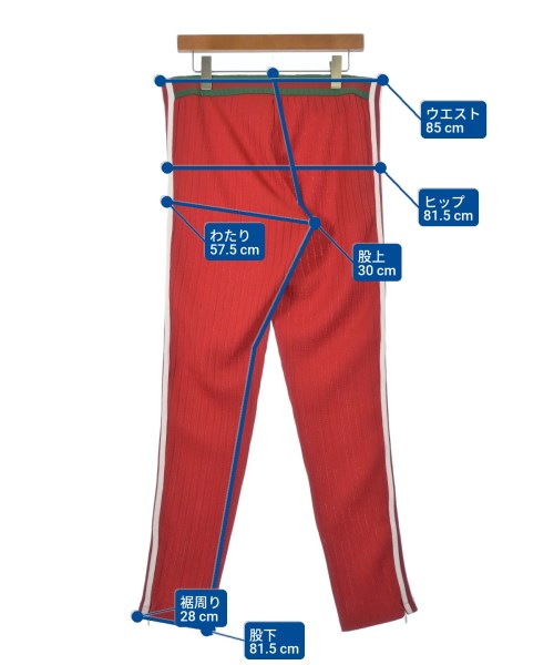 [Brand] GUCCI [Type] Men's [Condition] Rank: A Details: Quality indication Fray Size tag notched [Color] Red [Size] XXL [Actual size] Waist:85cm Hem circumference: 28cm Hip:81.5cm Crossing: 57.5cm Rise: 30cm Inseam:81.5cm [Material] 91% polyester, 9% cotton, (separate fabric) 51% polyester, 43% nylon, 6% polyurethane, (part) 100% nylon, (embroidery) 100% polyester [Country of origin] Italy [Comment] This is a collaboration item with adidas. [Other details] Season: Spring-Summer Pocket: None Translucency: None Fabric thickness: normal Lining: None Elasticity: Yes Gloss: None Opening and closing: None Pattern: printed logo Length: Long length |