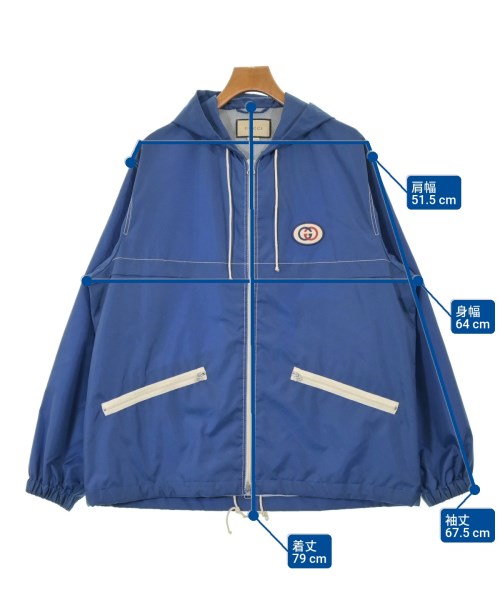 [Brand] GUCCI [Type] Men's [Condition] Rank: A [Color] Blue [Size] 50 (approximately XL) [Actual size] Width: 64cm Shoulder width: 51.5cm Sleeve length: 67.5cm Length:79cm [Material] (Outer and lining) 100% nylon, (Applique) 100% polyester [Country of origin] Italy [Other details] Season: Spring-Summer Pockets: 2 outside pockets, 1 inside pocket Translucency: None Fabric thickness: normal Lining: Yes Elasticity: None Gloss: Yes Opening and shutting: Double zip Pattern: printed logo |