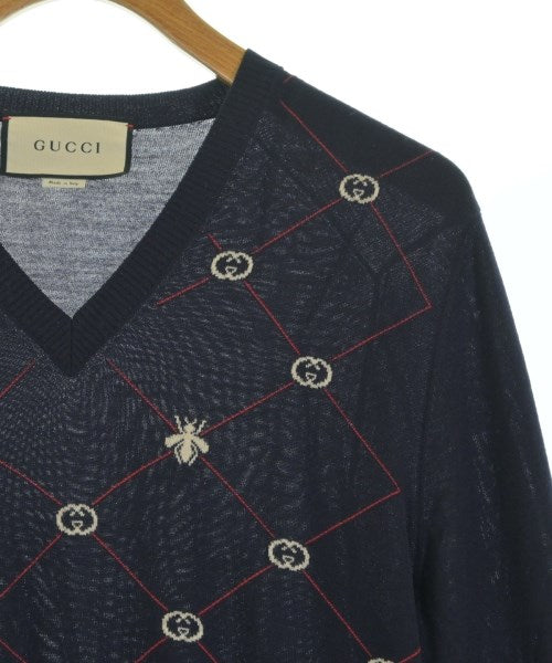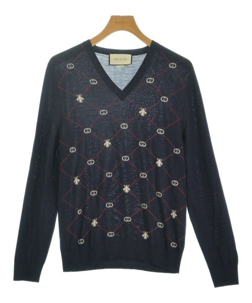[Brand] GUCCI [Type] Men's [Condition] Rank: B [Color] Navy x White x Red [Size] S [Actual size] Width: 41cm Shoulder width: 45cm Sleeve length:64cm Length:64cm [Material] 100% wool [Country of origin] Italy [Other details] Season: Autumn-Winter Pocket: None Translucency: Yes Fabric thickness: thin Lining: None Elasticity: Yes Gloss: None Opening and closing: None Neck: V-neck Sleeve length: long sleeve Pattern: patterned Gauge: High Gauge |