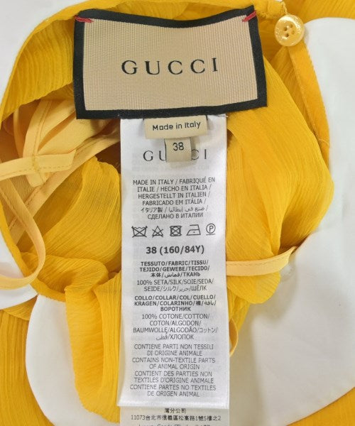 [Brand] GUCCI [Type] Women's [Condition] Rank: A [Color] Yellow [Size] 38 (S size) [Actual size] Width: 42cm Shoulder width: 38.5cm Sleeve length: 62.5cm Waist:64cm Length:77cm [Accessories] Inner [Material] 100% silk, (collar) 100% cotton [Country of origin] Italy [Other details] Season: Spring-Summer Pocket: None Translucency: Yes Fabric thickness: normal Lining: None Elasticity: None Gloss: None Opening and closing: button Sleeve length: long sleeve Pattern: Plain |