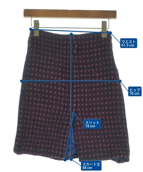 [Brand] PRADA [Type] Women's [Condition] Rank: B [Color] Purple (dots) [Size] 38 (S size) [Actual size] Waist: 61.5cm Hip:76cm Skirt length: 48cm Slit:18cm [Material] 100% wool, (lining) 100% rayon, (core) polyethylene [Country of origin] Slovakia [Other details] Season: Autumn-Winter Pocket: None Translucency: None Fabric thickness: normal Lining: Yes Elasticity: None Gloss: None Opening and closing: zipper |