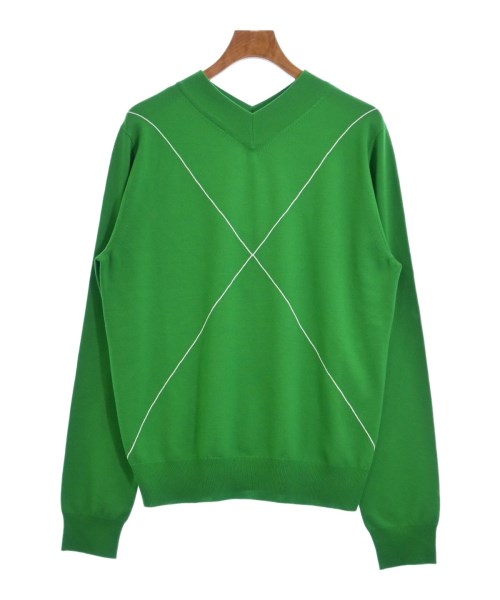 [Brand] BOTTEGA VENETA [Type] Men's [Condition] Rank: A [Color] Green x White [Size] XL [Actual size] Width: 57cm Shoulder width: 45cm Sleeve length: 73cm Total length from shoulder: 70cm [Material] 93% wool, 7% polyester, (embroidery) 83% rayon, 17% polyester [Country of origin] Italy [Other details] Season: Autumn-Winter Pocket: None Translucency: None Fabric thickness: normal Lining: None Elasticity: Yes Gloss: None Opening and closing: None Neck: V-neck Sleeve length: long sleeve Pattern: Plain Gauge: High Gauge |