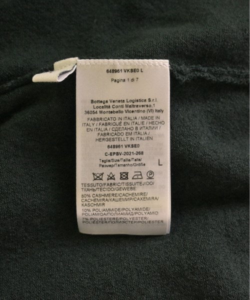 [Brand] BOTTEGA VENETA [Type] Men's [Condition] Rank: A [Color] Dark green [Size] L [Actual size] Width: 48cm Shoulder width: 42cm Sleeve length: 80cm Length:69cm Material: 80% cashmere, 10% nylon, 7% polyester, 3% polyurethane [Country of origin] Italy [Comment] The cuffs have thumb holes. [Other details] Season: Autumn-Winter Pocket: None Translucency: None Fabric thickness: thin Lining: None Elasticity: Yes Gloss: None Opening and closing: None Neck: Other Sleeve length: long sleeve Pattern: Plain Gauge: High Gauge |