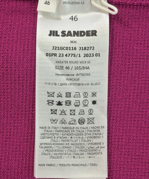 [Brand] JIL SANDER [Type] Men's [Condition] Rank: Like new [Color] Reddish purple [Size] 46 (M) [Actual size] Width: 48cm Shoulder width: 41cm Sleeve length: 25.5cm Length: 69.5cm [Material] 83% rayon, 17% nylon [Country of origin] Italy [Other details] Season: Spring-Summer Pocket: None Translucency: None Fabric thickness: thick Lining: None Elasticity: Yes Gloss: None Opening and closing: None Neck: crew neck Sleeve length: short sleeve Pattern: Plain Gauge: Medium Gauge |