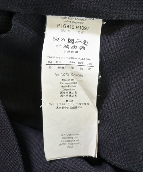 [Brand] EMPORIO ARMANI [Type] Men's [Condition] Rank: B [Color] Dark blue [Size] 50 (approximately XL) [Actual size] Width: 48.5cm Shoulder width: 44cm Sleeve length:63cm Length: 72cm [Material] 48% acrylic, 48% wool, 4% polyurethane [Country of origin] Italy [Other details] Season: Spring-Summer Pockets: Yes Outside Pockets: 2 Translucency: None Fabric thickness: normal Lining: None Elasticity: Yes Gloss: None Opening and closing: button |