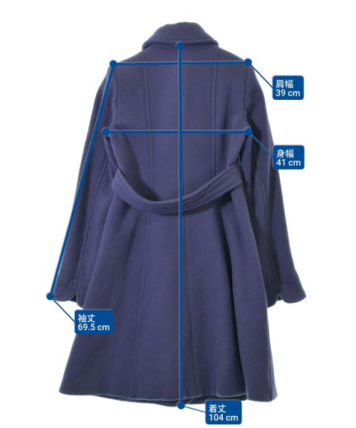 [Brand] ARMANI COLLEZIONI [Type] Women's [Condition] Rank: B Details: Rubbed, fluffing Quality label notch [Color] Purple [Size] 40 (M) [Actual size] Width: 41cm Shoulder width: 39cm Sleeve length: 69.5cm Length: 104cm [Material] Quality label unreadable [Country of origin] Italy [Other details] Season: Autumn-Winter Pockets: Yes Outside Pockets: 2 Translucency: None Fabric thickness: normal Lining: None Elasticity: None Gloss: None Opening and closing: button |