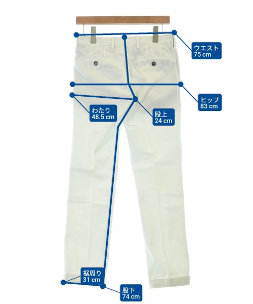 [Brand] PT01 [Type] Men's [Condition] Rank: B Details: Stained [Color] White [Size] 44 (S size) [Actual size] Waist:75cm Hem circumference: 31cm Hip:83cm Crossing: 48.5cm Rise:24cm Inseam:74cm [Material] 98% cotton, 2% polyurethane [Country of origin] Italy [Other details] Season: All season Pockets: Yes Outside Pockets: 5 Translucency: Yes Fabric thickness: normal Lining: None Elasticity: Yes Gloss: None Opening and closing: zipper Pattern: Plain Length: Long length |