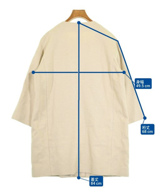 [Brand] L'EQUIPE YOSHIE INABA [Type] Women's [Condition] Rank: B [Color] Beige [Size] 38 (S size) [Actual size] Width: 49.5cm Sleeve length: 68cm Length:84cm [Material] 45% cotton, 36% rayon, 19% linen, (lining) 100% cupra [Country of origin] Japan [Other details] Season: Spring-Summer Pocket: None Translucency: None Fabric thickness: normal Lining: Yes Elasticity: None Gloss: Yes Opening and closing: button |