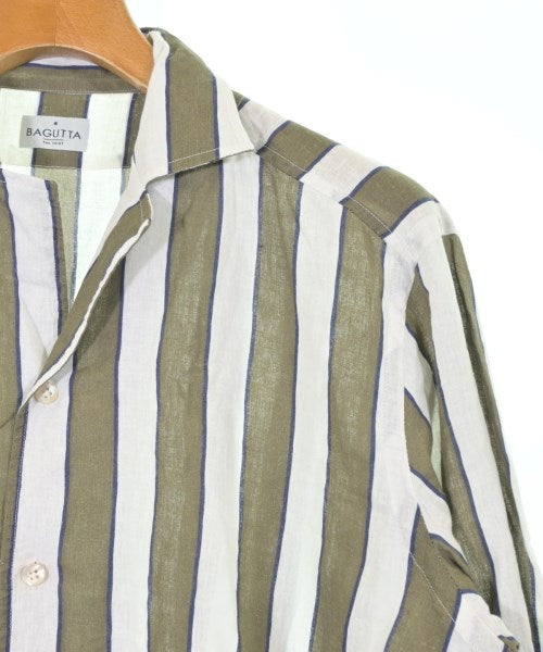 [Brand] Bagutta [Type] Men's [Condition] Rank: B [Color] Khaki x White x Navy (Stripes) [Size] L [Actual size] Width: 56cm Shoulder width: 47cm Sleeve length:66cm Length:69cm [Material] 55% linen, 45% cotton [Country of origin] Albania [Other details] Season: Spring-Summer Pocket: None Translucency: Yes Fabric thickness: normal Lining: None Elasticity: None Gloss: None Opening and closing: button Sleeve length: long sleeve Pattern: Plain |