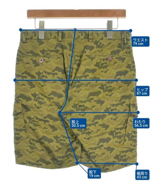 [Brand] PT BERMUDA [Type] Men's [Condition] Rank: B Details: Stitches near the crotch are missing [Color] Khaki (camouflage) [Size] 46 (M) [Actual size] Waist:79cm Hem circumference: 43cm Hip:87cm Crossing: 56.5cm Rise: 30.5cm Inseam: 19cm [Material] 98% cotton, 2% polyurethane [Other details] Season: Spring-Summer Pockets: Yes External pockets: 7 Translucency: None Fabric thickness: normal Lining: None Elasticity: Yes Gloss: None Opening and closing: button Pattern: patterned |
