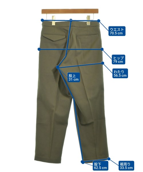 [Brand] Cellar Door [Type] Men's [Condition] Rank: B [Color] Khaki [Size] 44 (S size) [Actual size] Waist: 70.5cm Hem circumference: 33.5cm Hip:79cm Crossing: 56.5cm Rise: 31cm Inseam: 62.5cm [Material] 100% wool, (lining) cupra, (pocket lining) cotton (as per quality label) [Country of origin] Italy [Other details] Season: Autumn-Winter Pockets: Yes External pockets: 3 Translucency: None Fabric thickness: normal Lining: None Elasticity: None Gloss: None Opening and closing: zipper Pattern: Plain Length: Cropped |