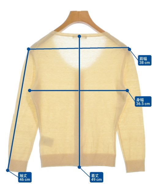 [Brand] STRENESSE [Type] Women's [Condition] Rank: B [Color] Yellow [Size] 34 (XXS) [Actual size] Width: 36.5cm Shoulder width: 38cm Sleeve length: 46cm Length: 49cm [Material] 100% cashmere [Country of origin] China [Other details] Season: Autumn-Winter Pocket: None Translucency: Yes Fabric thickness: normal Lining: None Elasticity: Yes Gloss: None Opening and closing: None Sleeve length: half sleeve Pattern: Plain Gauge: High Gauge |