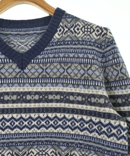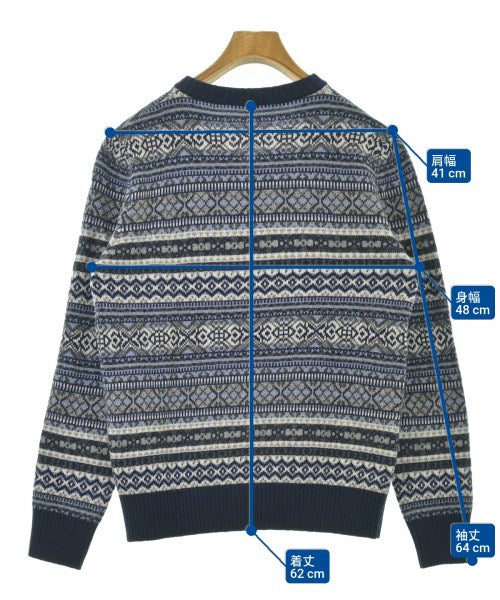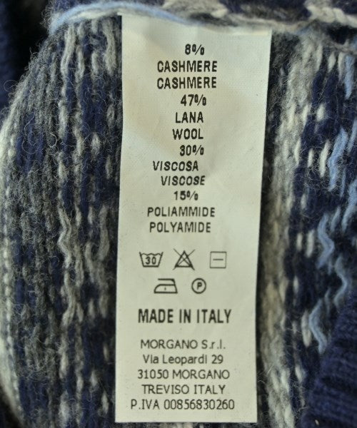[Brand] morgano [Type] Men's [Condition] Rank: A [Color] Blue x gray x white (all-over pattern) [Size] 50 (Medium) [Actual size] Width: 48cm Shoulder width: 41cm Sleeve length:64cm Length: 62cm [Material] 8% Cashmere, 47% Wool, 30% Rayon, 15% Nylon [Country of origin] Italy [Other details] Season: Autumn-Winter Pocket: None Translucency: None Fabric thickness: normal Lining: None Elasticity: Yes Gloss: None Opening and closing: None Neck: V-neck Sleeve length: long sleeve Pattern: patterned Gauge: Medium Gauge |