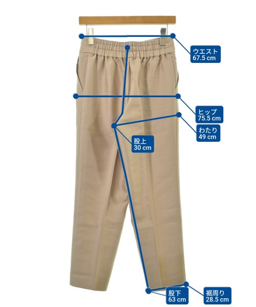[Brand] KOFTA [Type] Women's [Condition] Rank: B Details: Some scuffs here and there [Color] Beige [size] F [Actual size] Waist: 67.5cm Hem circumference: 28.5cm Hip:75.5cm Crossing:49cm Rise: 30cm Inseam:63cm [Material] 43% wool, 38% polyester, 19% silk, (lining) 100% cupra [Country of origin] Japan [Comment] The waist is adjustable with elastic. [Other details] Season: Spring-Summer Pockets: Yes Outside Pockets: 2 Translucency: None Fabric thickness: normal Lining: Yes Elasticity: None Gloss: None Opening and closing: zipper |