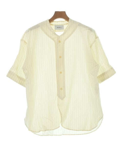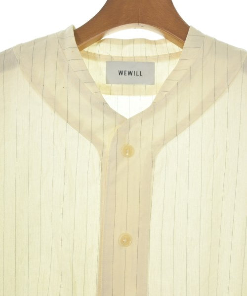 [Brand] WEWILL [Type] Men's [Condition] Rank: B Details: Some stains [Color] Ivory x navy (stripes) [Size] 1 (S size) [Actual size] Width: 52.5cm Shoulder width: 54cm Sleeve length:25cm Length: 71.5cm [Material] 38% rayon, 33% linen, 25% cotton, 3% polyurethane, 1% polyester [Country of origin] Japan [Other details] Season: Spring-Summer Pocket: None Translucency: Yes Fabric thickness: normal Lining: None Elasticity: Yes Gloss: None Opening and closing: button |