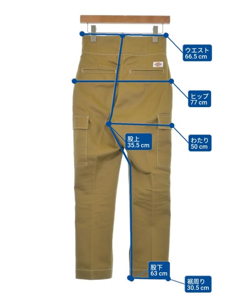 [Brand] FUMIE TANAKA [Type] Women's [Condition] Rank: B [Color] Khaki [Size] 1 (S size) [Actual size] Waist: 66.5cm Hem circumference: 30.5cm Hip:77cm Crossing:50cm Rise: 35.5cm Inseam:63cm [Material] 65% polyester, 35% cotton [Country of origin] China [Comment] This is a collaboration item with Dickies. [Other details] Season: Spring-Summer Pockets: Yes Outside Pockets: 6 Translucency: None Fabric thickness: normal Lining: None Elasticity: None Gloss: None Opening and closing: zipper Closure: Hook and eye |