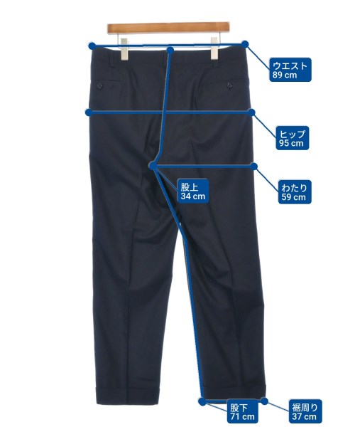 [Brand] Ambrosi [Type] Men's [Condition] Rank: B Details: Tag pen marks [Color] Navy [Size] - (approximately XL) [Actual size] Waist:89cm Hem circumference: 37cm Hip:95cm Crossing:59cm Rise: 34cm Inseam:71cm [Material] 100% wool [Country of origin] Italy [Other details] Season: Autumn-Winter Pockets: Yes Outside Pockets: 4 Translucency: None Fabric thickness: normal Lining: None Elasticity: None Gloss: None Opening and closing: zipper |