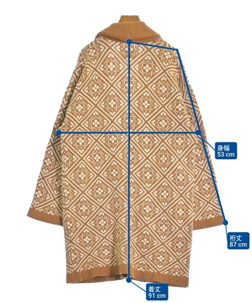 [Brand] Taiga Igari [Type] Women's [Condition] Rank: B [Color] Brown x White (all-over pattern) [size] F [Actual size] Width: 53cm Sleeve length: 87cm Length: 91cm [Material] 50% cotton, 50% acrylic [Country of origin] Japan [Other details] Season: Autumn-Winter Pockets: Yes Outside Pockets: 2 Translucency: None Fabric thickness: normal Lining: None Elasticity: Yes Gloss: None Opening and closing: button Opening and closing: None Pattern: Plain |