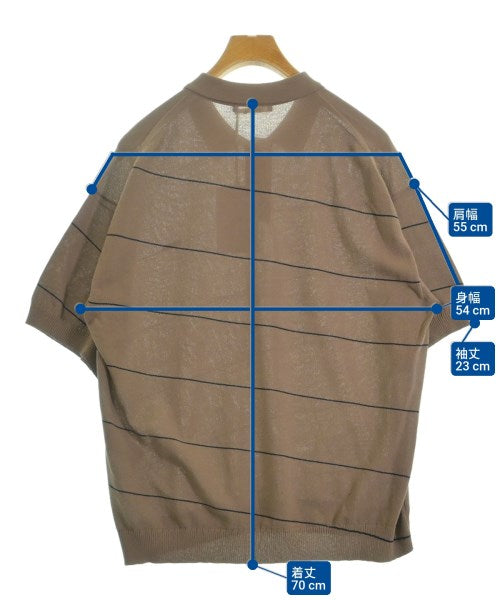 [Brand] NTN [Type] Men's [Condition] Rank: Like new [Color] Brown x Navy (striped) [Size] 2 (Medium) [Actual size] Width: 54cm Shoulder width: 55cm Sleeve length:23cm Length: 70cm [Material] 100% cotton [Country of origin] Japan [Other details] Season: Spring-Summer Pocket: None Translucency: None Fabric thickness: normal Lining: None Elasticity: Yes Gloss: None Opening and closing: button Neck: Other Sleeve length: short sleeve Pattern: patterned Gauge: High Gauge |
