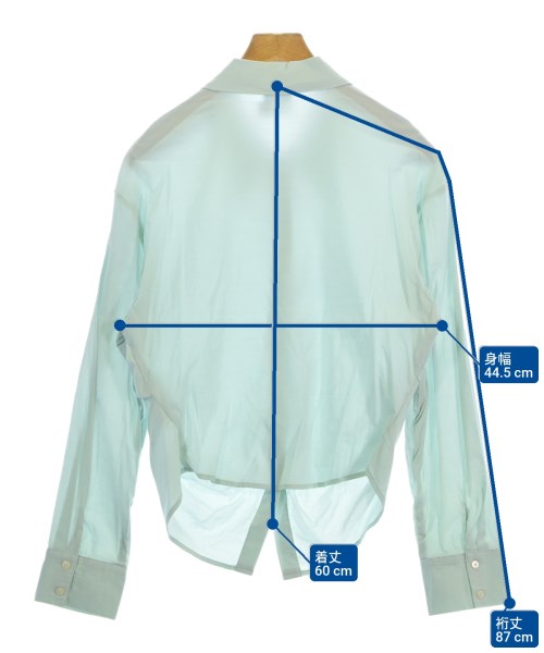 [Brand] STUDIO DOE [Type] Women's [Condition] Rank: A [Color] Light blue [Size] M [Actual size] Width: 44.5cm Sleeve length: 87cm Length: 60cm [Material] 77% rayon, 15% nylon, 8% polyurethane [Country of origin] China [Other details] Season: Spring-Summer Pocket: None Translucency: Yes Fabric thickness: normal Lining: None Elasticity: Yes Gloss: None Opening and closing: button Sleeve length: long sleeve Pattern: Plain |