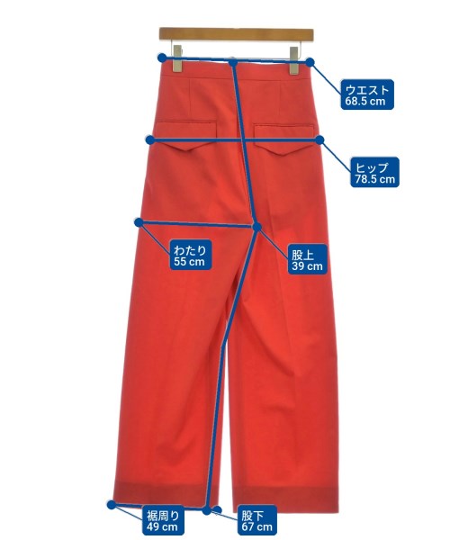 [Brand] TOMORROWLAND .B [Type] Women's [Condition] Rank: A [Color] Red [Size] 34 (approximately XS) [Actual size] Waist: 68.5cm Hem circumference: 49cm Hip:78.5cm Crossing:55cm Rise:39cm Inseam:67cm [Material] 100% wool [Country of origin] Japan [Other details] Season: Autumn-Winter Pockets: Yes Outside Pockets: 2 Translucency: None Fabric thickness: normal Lining: None Elasticity: None Gloss: None Opening and closing: button Opening and closing: zipper Closure: Hook and eye |