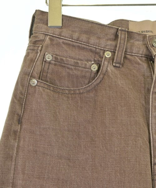 [Brand] THE SHISHIKUI [Type] Women's [Condition] Rank: B Details: Rubbed [Color] Brown [Size] 24 (S rank) [Actual size] Waist:67cm Hem circumference: 37cm Hip:76cm Crossing:53cm Rise: 33cm Inseam: 66cm [Material] 100% cotton, (label) cowhide [Country of origin] Japan [Other details] Season: All season Pockets: Yes Outside Pockets: 5 Translucency: None Fabric thickness: normal Lining: None Elasticity: None Gloss: None Opening and closing: zipper |