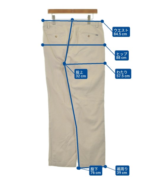 [Brand] Polo Ralph Lauren [Type] Men's [Condition] Rank: C Details: Rubbed. [Color] Beige [Size] 34 (approximately XL) [Actual size] Waist: 84.5cm Hem circumference: 39cm Hip:88cm Crossing: 57.5cm Rise: 32cm Inseam:76cm [Material] 100% cotton [Country of Origin] Sri Lanka [Comment] A classic piece [Other details] Season: Spring-Summer Pockets: Yes Outside Pockets: 5 Translucency: None Fabric thickness: normal Lining: None Elasticity: None Gloss: None Opening and closing: zipper Pattern: Plain Length: Long length |